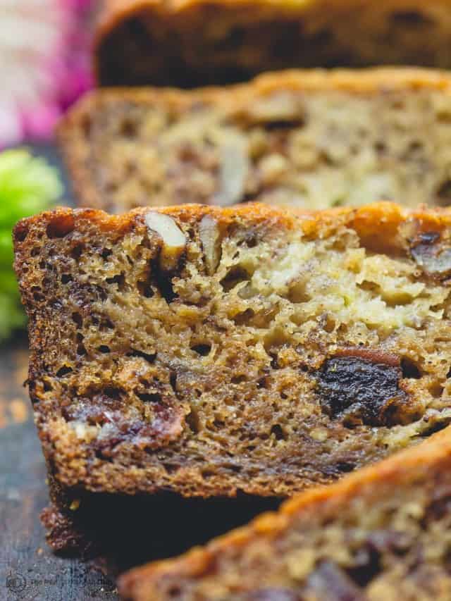 Not your average banana bread, this healthy recipe swaps the butter and sugar for extra virgin olive oil and honey. Then, we add warming spices and Medjool dates to bring a Mediterranean flair. It’s perfectly sweet (but not too much so), and ready to eat in under an hour. Plus, it tastes even better the next day. So you can prepare it in advance, making your brunch preparations an breeze!