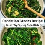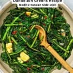 Dandelion greens recipes are a pleasantly bitter spring staple in southern Italy, Greece, and many other Mediterranean countries. In my Italian version, I quickly blanch and then sautée the dandelion greens with garlic and red pepper flakes for tasty, healthful side dish.