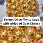 In these Sicilian-inspired phyllo cup appetizers, orange adds sweetness to a savory combination of fennel, shallot, and salty olives. A dot of creamy whipped goat cheese is the perfect finishing touch.