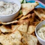 1. What kind of pita is best for pita chips? You can use any kind of pita you like. I prefer pocket pitas that you can split at the seam in halves so that you have a thinner layer to work with. But there are some thick pitas, lavish, or even naan that you can use to make thicker chips that have more substance to stand to your dips. You’ll just want to adjust the cooking time to make sure they get enough color and crisp.