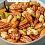 - Mixed Nuts. I use almonds, cashews, pecans, and pistachios for this recipe, but you can use any nuts you like as long as they are raw and unroasted. Add smaller nuts like pistachios near the end of roasting to prevent burning. Cooking them for a shorter time also helps ensure they retain their lovely green color.