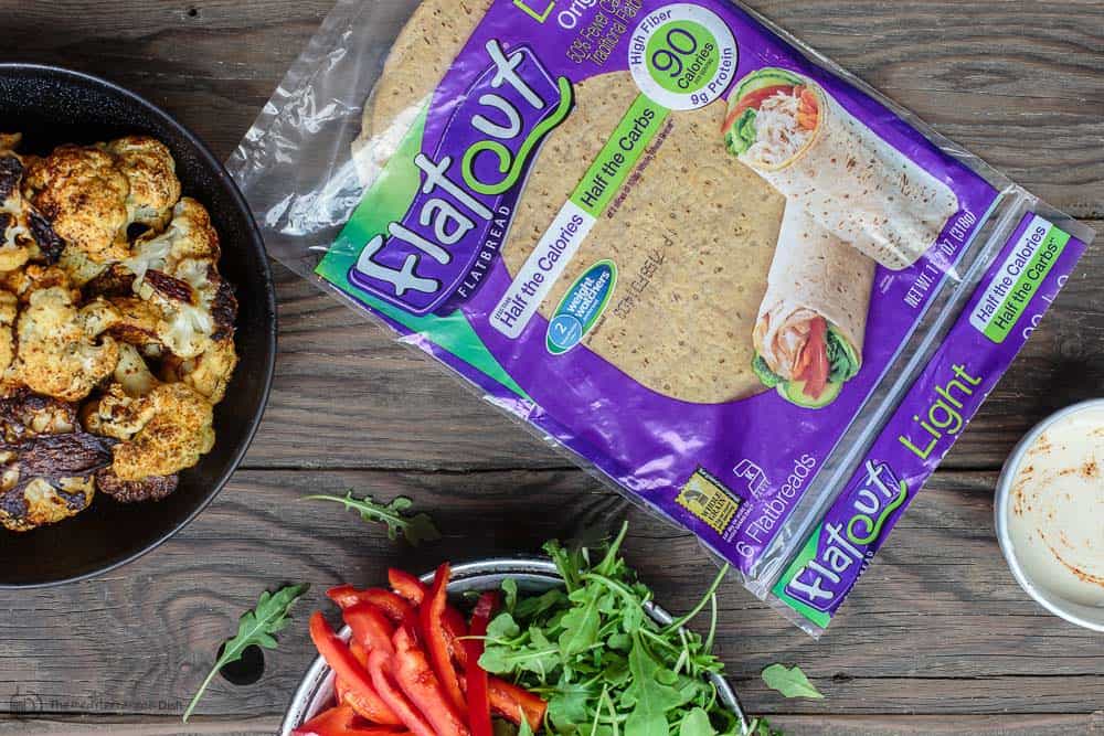 SUZY!!!! This may be the most delicious wrap I have eaten in my 51 years on this earth! The roasted cauliflower, arugula salad, drizzled with a roasted garlic tzatziki sauce was absolutely PHENOMENAL and my wife agreesI do, however, need to find a low calorie wrap because the flour tortillas we used have over 200 caps each!