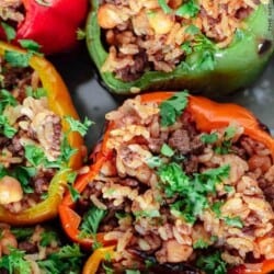 For another meaty stuffed pepper recipe, don’t miss our Italian Stuffed Peppers. Every bit as hearty and delicious as this Greek version!