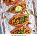 Stuffed Sweet Potatoes are a hearty, wholesome vegetarian meal packed with bold Mediterranean flavors. To make them, I fill roasted sweet potatoes with garlicky chickpeas, tangy sun-dried tomatoes, spinach, and lime, then top them with creamy avocado crema. Perfect for a cozy lunch or dinner, this dish is as satisfying as it is easy!
