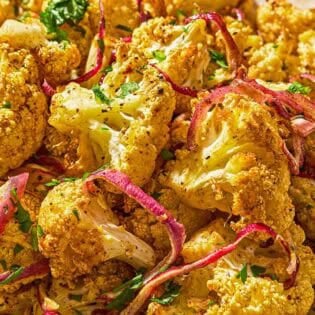 This air fryer cauliflower is tossed with warm spices and sweet red onion, and finished with lemon. It’s a simple side dish that delivers big Mediterranean flavor with very little effort.