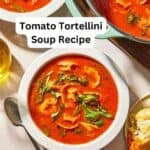 Warm up with this easy tomato tortellini soup recipe! A vegetarian-friendly dinner featuring a rich tomato broth, fresh spinach, and cheese-filled pasta. Ready in 30 minutes!